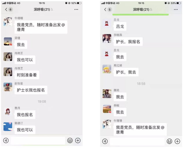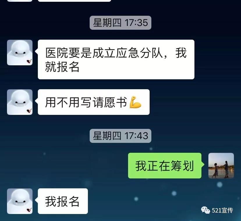 疫情就是命令!接到通知后,醫(yī)院護(hù)理部、院感處、醫(yī)務(wù)處立即動(dòng)員部署,面對自愿報(bào)名申請,521醫(yī)院的醫(yī)護(hù)人員沒有退縮,大家紛紛秒回“我報(bào)名”,爭取上前線支援,斬釘截鐵的三個(gè)字表明了他們的態(tài)度和決心,8名醫(yī)護(hù)人員按時(shí)上報(bào)西安市衛(wèi)健委,進(jìn)入陜西省第二批醫(yī)療隊(duì)待命,以實(shí)際行動(dòng)為湖北疫情防控做貢獻(xiàn)!