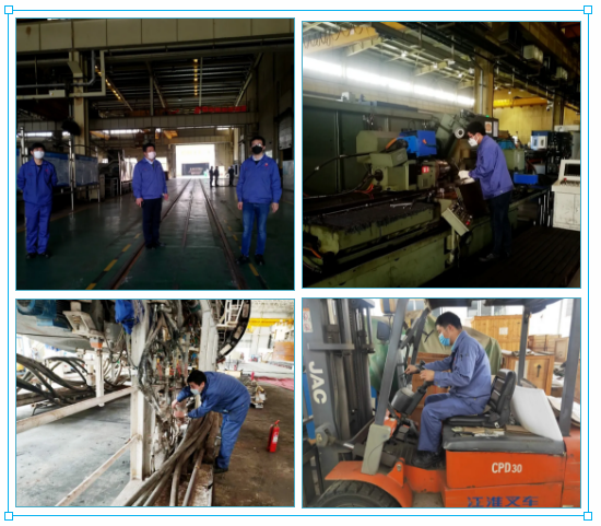 “防疫物資到位、人員排查到位、復(fù)工手續(xù)齊全。疫情防控關(guān)口已下沉到班組,生產(chǎn)正常推進(jìn)?!?/p> 經(jīng)過緊張有序的前期準(zhǔn)備工作,地處湖北武漢的中國兵器工業(yè)集團(tuán)武重集團(tuán)正式進(jìn)入復(fù)工復(fù)產(chǎn)狀態(tài)。 3月19日上午8時,首批復(fù)工人員準(zhǔn)時抵達(dá)公司,戴著口罩,在接受體溫檢測、手部消毒后,進(jìn)入廠區(qū)。 提前謀劃 打好“雙戰(zhàn)役” 3月13日以來,武重集團(tuán)先后召開公司黨委會議、董事長辦公會,傳達(dá)學(xué)習(xí)習(xí)近平總書記考察湖北新冠肺炎疫情防控工作時的重要講話精神,樹信心、鼓干勁、戰(zhàn)疫情、促發(fā)展,動員全公司上下緊盯全年各項目標(biāo)任務(wù),迎難而上、奮力拼搏,努力把疫情耽誤的時間“搶”回來,做到貫徹落實習(xí)近平總書記重要講話精神更加到位,統(tǒng)籌推進(jìn)疫情防控和企業(yè)發(fā)展更加有效。 為切實做好公司復(fù)工復(fù)產(chǎn)前后疫情防控,維護(hù)生產(chǎn)經(jīng)營正常運行,按照復(fù)工有關(guān)要求,公司疫情防控領(lǐng)導(dǎo)小組組織制定了《復(fù)工復(fù)產(chǎn)防控新型冠狀病毒肺炎疫情工作方案》、《疫情防控應(yīng)急預(yù)案》以及疫情期間安全生產(chǎn)、員工管理、進(jìn)出廠區(qū)管理和通勤車、食堂、消毒等后勤保障工作細(xì)則等文件,配備了口罩、防護(hù)服、測溫槍、消毒水等防護(hù)用品及應(yīng)急物資,設(shè)置了應(yīng)急隔離區(qū),確保復(fù)工后的防疫所需。 周密部署 筑牢“防疫墻” “復(fù)工任務(wù)雖急,人員安全更重,必須把好人員進(jìn)場第一關(guān)?!痹谌藛T進(jìn)場管控上,武重集團(tuán)建立了這樣一條“硬核規(guī)定”:員工必須每天通過企業(yè)微信提交體溫信息,建立員工健康檔案,筑牢復(fù)工“防疫墻”。 在接到復(fù)工批復(fù)后,公司領(lǐng)導(dǎo)多次帶隊深入生產(chǎn)現(xiàn)場,檢查疫情防控工作和復(fù)工前的各項準(zhǔn)備工作,協(xié)調(diào)解決項目在復(fù)工過程中存在的問題,要求通過優(yōu)化產(chǎn)出計劃拉動復(fù)工復(fù)產(chǎn)體系,使公司上下盡快進(jìn)入達(dá)產(chǎn)達(dá)效狀態(tài)。3月17日到18日,各單位按照各項預(yù)案措施針對安全、設(shè)備、就餐、消毒、乘車、住宿、應(yīng)急體系演練、職工隔離工作等方面進(jìn)行全面排查,全力確保疫情防控精準(zhǔn)到位、安全生產(chǎn)有序推進(jìn)。 公司領(lǐng)導(dǎo)到生產(chǎn)現(xiàn)場、職工食堂察看復(fù)工復(fù)產(chǎn)各項準(zhǔn)備工作 做實做細(xì) 當(dāng)好“排頭兵” 新冠肺炎疫情發(fā)生以來,武重集團(tuán)迅速投身戰(zhàn)“疫”,充分利用武重集團(tuán)“大國重器”技術(shù)及加工能力優(yōu)勢,多次為火神山醫(yī)院、雷神山醫(yī)院建設(shè)、防疫物資加工等急難險重任務(wù)貢獻(xiàn)力量,展示了武重人“召之即來,來之能戰(zhàn),戰(zhàn)之必勝”的優(yōu)良作風(fēng)。 隨著復(fù)工的啟動,武重集團(tuán)生產(chǎn)指揮系統(tǒng)迅速重新編制了年度施工進(jìn)度計劃,將延誤工期時間分解到各個施工階段,保證施工節(jié)點任務(wù)完成,多個重大項目將從“暫停”模式切換為“快進(jìn)”模式,加快復(fù)工復(fù)產(chǎn)。 進(jìn)入工作區(qū)前進(jìn)行體溫測量及消毒 復(fù)工單位開展班前會 各單位復(fù)工有序進(jìn)行 食堂用餐避免扎堆 武重集團(tuán)將以鏗鏘的步伐、昂揚的斗志,聚焦重點項目,全力以赴做好復(fù)工復(fù)產(chǎn)各項工作,繼續(xù)發(fā)揮好大國重器、央企頂梁柱作用,奮力奪取疫情防控和企業(yè)發(fā)展雙勝利。(武重集團(tuán)) |