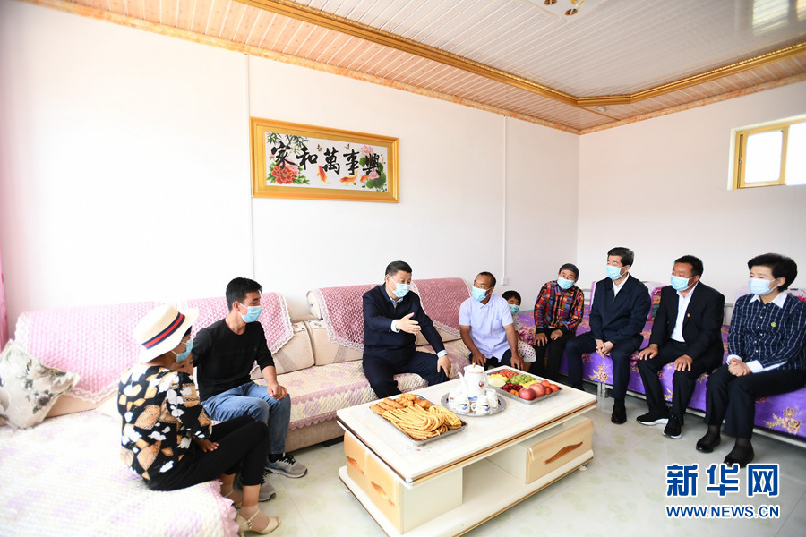 6月8日至10日,中共中央總書記、國家主席、中央軍委主席習近平在寧夏考察。這是6月8日下午,習近平在吳忠市紅寺堡區(qū)紅寺堡鎮(zhèn)弘德村看望移民搬遷群眾,向村民們揮手致意。 新華社記者 謝環(huán)馳 攝 新華社銀川6月10日電 中共中央總書記、國家主席、中央軍委主席習近平近日在寧夏考察時強調(diào),要全面落實黨中央決策部署,堅持穩(wěn)中求進工作總基調(diào),堅持新發(fā)展理念,落實全國“兩會”工作部署,堅決打好三大攻堅戰(zhàn),扎實做好“六穩(wěn)”工作,全面落實“六?!比蝿眨朔鹿诜窝滓咔閹淼牟焕绊?,優(yōu)先穩(wěn)就業(yè)保民生,決勝全面建成小康社會,決戰(zhàn)脫貧攻堅,繼續(xù)建設經(jīng)濟繁榮、民族團結、環(huán)境優(yōu)美、人民富裕的美麗新寧夏。 夏日炎炎,塞上江南天高云淡,草木蔥蘢。6月8日至10日,習近平在寧夏回族自治區(qū)黨委書記陳潤兒、自治區(qū)政府主席咸輝陪同下,先后來到吳忠、銀川等地,深入農(nóng)村、社區(qū)、防洪工程、農(nóng)業(yè)產(chǎn)業(yè)園區(qū)等,就統(tǒng)籌推進常態(tài)化疫情防控和經(jīng)濟社會發(fā)展工作、鞏固脫貧攻堅成果、加強生態(tài)環(huán)境保護、推動民族團結進步進行調(diào)研。 6月8日至10日,中共中央總書記、國家主席、中央軍委主席習近平在寧夏考察。這是6月8日下午,習近平在吳忠市紅寺堡區(qū)紅寺堡鎮(zhèn)弘德村扶貧車間,同正在加工制作紙箱的村民交流。 新華社記者 鞠鵬 攝 吳忠市紅寺堡區(qū)紅寺堡鎮(zhèn)弘德村是生態(tài)移民村,有建檔立卡貧困戶1036戶4497人,目前還有20戶50人未脫貧。8日下午,習近平首先來到弘德村考察脫貧攻堅工作。在村扶貧車間院內(nèi),他聽取了寧夏以及弘德村脫貧攻堅情況介紹。走進扶貧車間,習近平同正在加工制作紙箱的村民們親切交流。鄉(xiāng)親們告訴總書記,村里引入企業(yè)從事紙箱包裝業(yè)務,解決了一百多人就業(yè)問題。習近平表示肯定。他指出,興辦扶貧車間目的是扶貧,要堅持扶貧性質(zhì),向困難群眾傾斜,多招收困難群眾就業(yè)。鄉(xiāng)親們在家門口就業(yè),雖然收入不比進城務工高,但省去了住宿、伙食、交通等費用,還能照顧家庭,一舉多得。企業(yè)參與興辦扶貧車間,體現(xiàn)了先富帶后富,很有意義。 6月8日至10日,中共中央總書記、國家主席、中央軍委主席習近平在寧夏考察。這是6月8日下午,習近平在吳忠市紅寺堡區(qū)紅寺堡鎮(zhèn)弘德村察看回族村民劉克瑞家院落。 新華社記者 謝環(huán)馳 攝 隨后,習近平步行察看村容村貌。在回族村民劉克瑞家,他仔細看院落、客廳、臥室、廚房、牛棚,詳細了解家庭就業(yè)、收入、看病、社保等情況。劉克瑞告訴總書記,家里的耕地流轉(zhuǎn)了,還養(yǎng)了3頭肉牛,兒子兒媳在附近紡織廠打工,2017年全家脫貧,生活越來越好,鄉(xiāng)親們打心底里感到黨的政策好,真切感受到共產(chǎn)黨親。習近平詢問劉克瑞老兩口還有什么困難、對今后的日子有什么打算。習近平強調(diào),鄉(xiāng)親們搬遷后,更好生活還在后頭。希望鄉(xiāng)親們百尺竿頭、更進一步,發(fā)揮自身積極性、主動性、創(chuàng)造性,用自己的雙手創(chuàng)造更加美好的新生活。 6月8日至10日,中共中央總書記、國家主席、中央軍委主席習近平在寧夏考察。這是6月8日下午,習近平在吳忠市紅寺堡區(qū)紅寺堡鎮(zhèn)弘德村,同回族村民劉克瑞一家親切交流。 新華社記者 謝環(huán)馳 攝 離開村子時,村民們紛紛趕到村口,歡送總書記。習近平向大家揮手致意,祝愿鄉(xiāng)親們生活幸福。 6月8日至10日,中共中央總書記、國家主席、中央軍委主席習近平在寧夏考察。這是6月8日下午,習近平在黃河吳忠濱河大道古城灣砌護段,察看黃河生態(tài)治理保護狀況。 新華社記者 鞠鵬 攝 習近平高度重視黃河流域生態(tài)保護和高質(zhì)量發(fā)展。他來到黃河吳忠濱河大道古城灣砌護段,沿岸邊步道,察看黃河生態(tài)治理保護狀況,聽取黃河寧夏段生態(tài)保護治理和水利工程建設情況匯報。習近平指出,黃河是中華民族的母親河,是中華民族和中華文明賴以生存發(fā)展的寶貴資源。自古以來,黃河水滋養(yǎng)著寧夏這片美麗富饒的土地,今天仍在造福寧夏各族人民。寧夏要有大局觀念和責任擔當,更加珍惜黃河,精心呵護黃河,堅持綜合治理、系統(tǒng)治理、源頭治理,明確黃河保護紅線底線,統(tǒng)籌推進堤防建設、河道整治、灘區(qū)治理、生態(tài)修復等重大工程,守好改善生態(tài)環(huán)境生命線。 6月8日至10日,中共中央總書記、國家主席、中央軍委主席習近平在寧夏考察。這是6月8日下午,習近平在吳忠市利通區(qū)金花園社區(qū)黨群活動服務中心,同社區(qū)志愿者代表親切交談。 新華社記者 鞠鵬 攝 6月8日至10日,中共中央總書記、國家主席、中央軍委主席習近平在寧夏考察。這是6月8日下午,習近平在吳忠市利通區(qū)金花園社區(qū)考察民族團結社區(qū)創(chuàng)建工作情況。 新華社記者 謝環(huán)馳 攝 6月8日至10日,中共中央總書記、國家主席、中央軍委主席習近平在寧夏考察。這是6月8日下午,習近平在吳忠市利通區(qū)金花園社區(qū)廣場,同居民們親切交流。 新華社記者 燕雁 攝 傍晚時分,習近平前往吳忠市利通區(qū)金花園社區(qū)。社