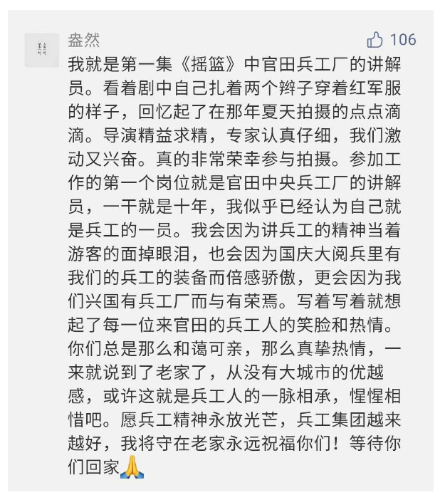影片勾起了退休老同志無限懷念、兵工人的甜美記憶、攝制期間官田中央兵工廠文化教育基地工作人員的難忘瞬間......