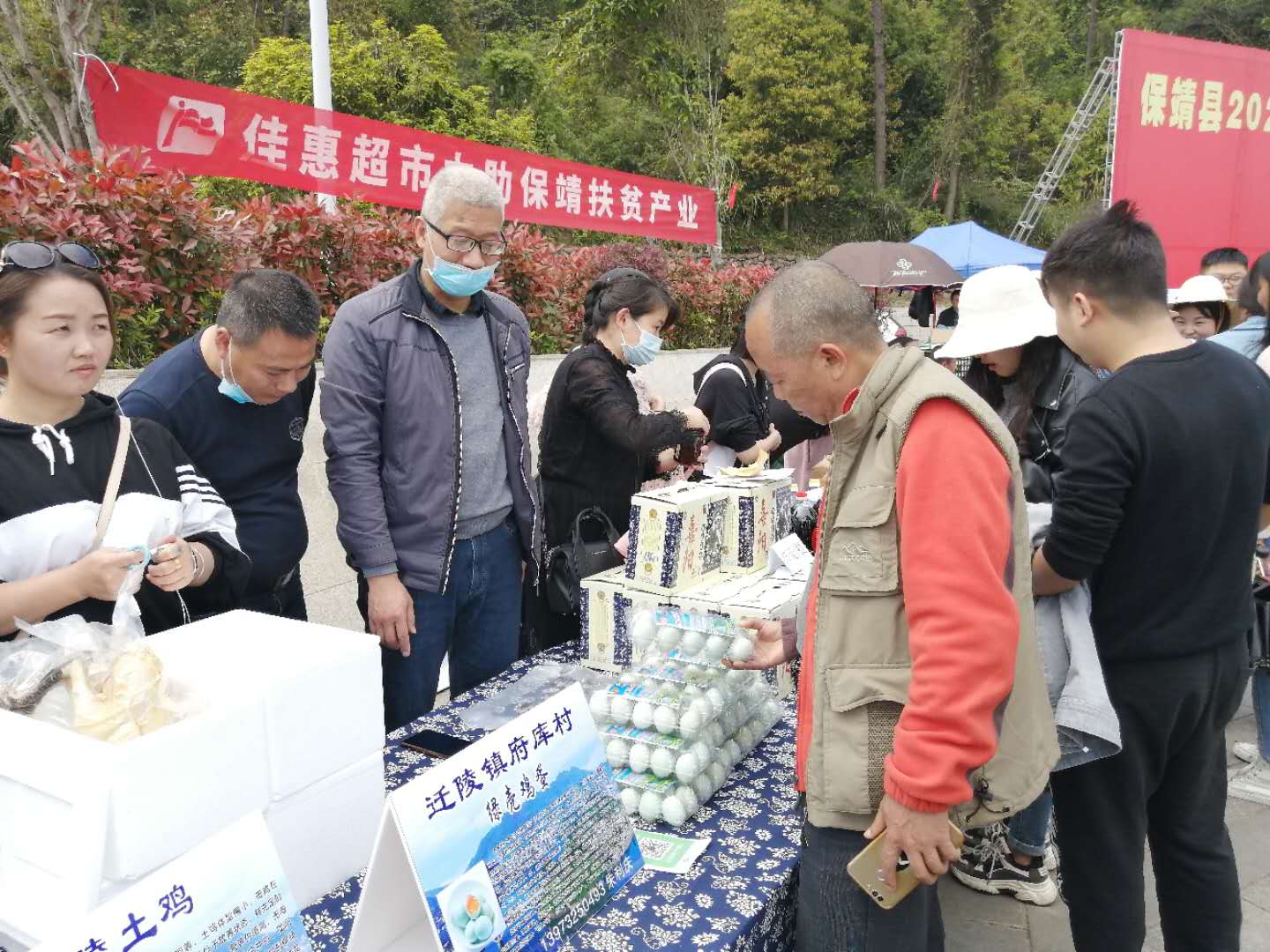 朱利慶帶著村特色養(yǎng)殖府庫綠殼土雞蛋亮相當(dāng)?shù)厥袌?/p>
