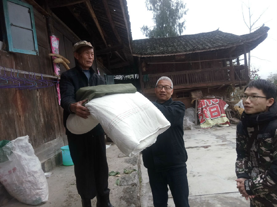 朱利慶為搬遷新家的建檔立卡貧困戶送上新被子和祝福