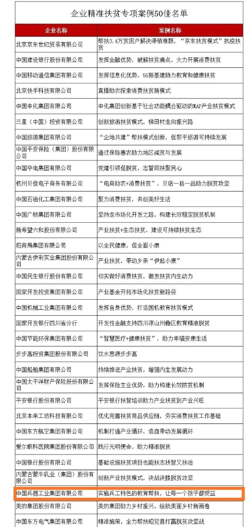 兵器工業(yè)集團(tuán)教育扶貧獲評(píng)國(guó)務(wù)院扶貧辦2020年企業(yè)精準(zhǔn)扶貧專(zhuān)項(xiàng)案例“50佳” |