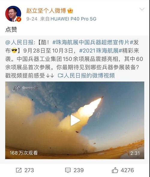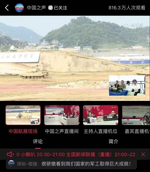 人民日報、新華社、中國日報、共青團中央、國資小新、騰訊軍事、鳳凰軍事、新浪軍事等新媒體發(fā)布的集團公司航展宣傳片等視頻作品燃爆全網(wǎng),閱讀量突破三千萬人次,得到外交部發(fā)言人趙立堅轉(zhuǎn)載點贊。集團公司微信、微博、抖音號、微信視頻號等新媒體宣傳片播放閱讀量超過400萬人次。同時,央視新聞、新華社、中國之聲、央視軍事、央視新媒體、解放軍報、共青團中央、國資小新、環(huán)球時報等多家媒體對集團公司靜、動態(tài)展區(qū)進行現(xiàn)場直播,在電視端、客戶端、微信視頻號、微博、B站、快手、抖音等平臺受到高度關(guān)注。著名軍事專家杜文龍、央視主持人顧國寧、央廣中國之聲主持人王藝等直播兵器館、動態(tài)表演區(qū)裝備。 《參考消息》、新華網(wǎng)、央廣網(wǎng)、中國日報、科技日報、解放軍報、人民網(wǎng)、中國新聞網(wǎng)、中國青年網(wǎng)、中國網(wǎng)、中工網(wǎng)、央視網(wǎng)、環(huán)球網(wǎng)、騰訊網(wǎng)、新浪網(wǎng)、鳳凰網(wǎng)、搜狐網(wǎng)、網(wǎng)易網(wǎng)、今日頭條等中央主流媒體和知名網(wǎng)絡(luò)媒體以及南方日報、廣東電視臺、北京電視臺、新京報、珠海傳媒集團、深圳衛(wèi)視等省市媒體對集團公司參展情況進行了圖片、文字、視頻報道。 航展期間,備受關(guān)注的中國兵器館,參觀的觀眾絡(luò)繹不絕。 |