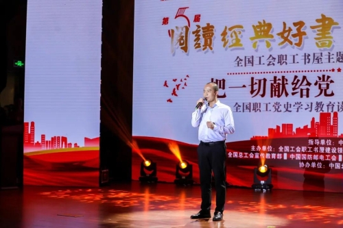 活動由全總宣教部、中國國防郵電工會、中國兵器工業(yè)集團有限公司黨群工作部、中國工人出版社共同承辦,中國北方工業(yè)有限公司協(xié)辦。來自中華全國總工會、全國工會職工書屋建設(shè)領(lǐng)導(dǎo)小組成員、部分全國工會職工書屋公益代言人,各全國產(chǎn)業(yè)工會、全總各部門負(fù)責(zé)同志,部分省市總工會副主席、宣教部長,兵器工業(yè)集團一線勞模工匠、職工代表等參加活動。 |