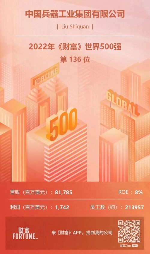 8月3日,《財富》世界500強(qiáng)排行榜正式發(fā)布,中國兵器工業(yè)集團(tuán)有限公司以817.85億美元的營業(yè)收入排名第136位,連續(xù)第13年入榜。