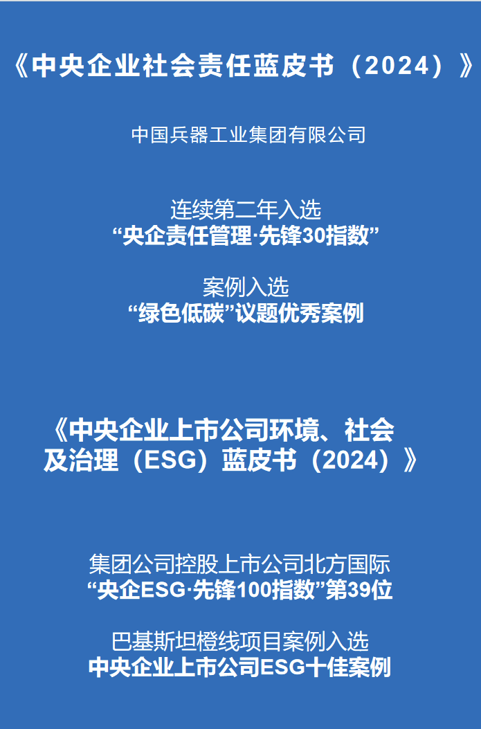 11月7日至8日,由國務(wù)院國資委主辦的“第七屆中國企業(yè)論壇之國有企業(yè)社會責任平行論壇”和2024中國企業(yè)新媒體年會在京舉行。 國有企業(yè)社會責任平行論壇現(xiàn)場發(fā)布了《中央企業(yè)社會責任藍皮書(2024)》《中央企業(yè)海外環(huán)境、社會及治理(ESG)藍皮書(2024)》《中央企業(yè)上市公司環(huán)境、社會及治理(ESG)藍皮書(2024)》等系列成果。其中,集團公司連續(xù)第二年入選“央企責任管理·先鋒30指數(shù)”榜單,集團公司案例入選“綠色低碳”議題優(yōu)秀案例,所屬控股上市公司北方國際入選“央企ESG·先鋒100指數(shù)”第39位,巴基斯坦橙線項目案例入選中央企業(yè)上市公司ESG十佳案例。
