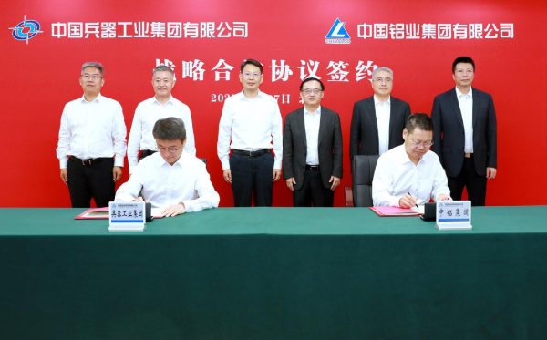 6月27日,中國兵器工業(yè)集團有限公司與中國鋁業(yè)集團有限公司在京簽署戰(zhàn)略合作協(xié)議。集團公司黨組書記、董事長程福波,總經(jīng)理、黨組副書記馬云雙與中鋁集團黨組書記、董事長段向東,總經(jīng)理、黨組副書記王石磊進行了座談交流并共同見證簽約。集團公司黨組成員、副總經(jīng)理閆哲、史志榮;中鋁集團黨組成員、副總經(jīng)理田永忠、魏成文出席活動。閆哲、田永忠分別代表雙方簽署協(xié)議。